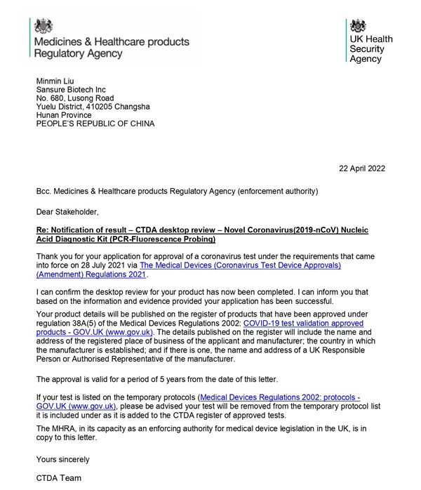 国内首个!710公海生物新冠核酸检测试剂获英国CTDA认证