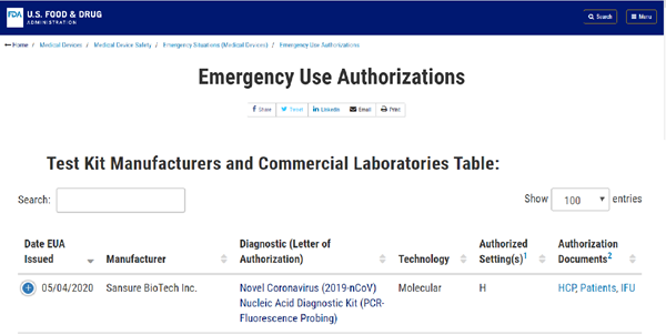 北京时间5月5日晚,710公海生物新型冠状病毒核酸检测试剂盒获美国食品药品监督管理局(FDA)紧急使用授权(EUA, Emergency Use Authorizations),这是该产品继1月28日获得中国国家药监局(NMPA)注册认证、3月3日获得欧盟CE认证后,710公海生物获得的又一重要认证,将进一步助力公司服务全球新冠肺炎疫情防控。